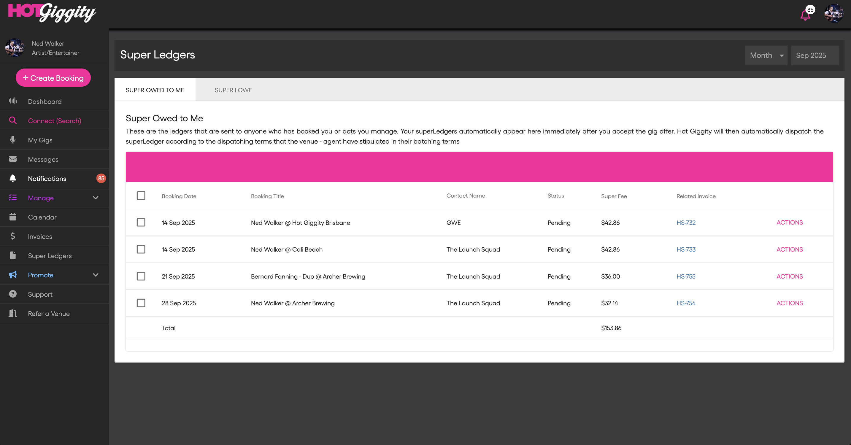 For any sole trader, Hot Giggity adds an SG line for that player on the hirer’s invoice and tracks it under the hirer’s Super I owe.