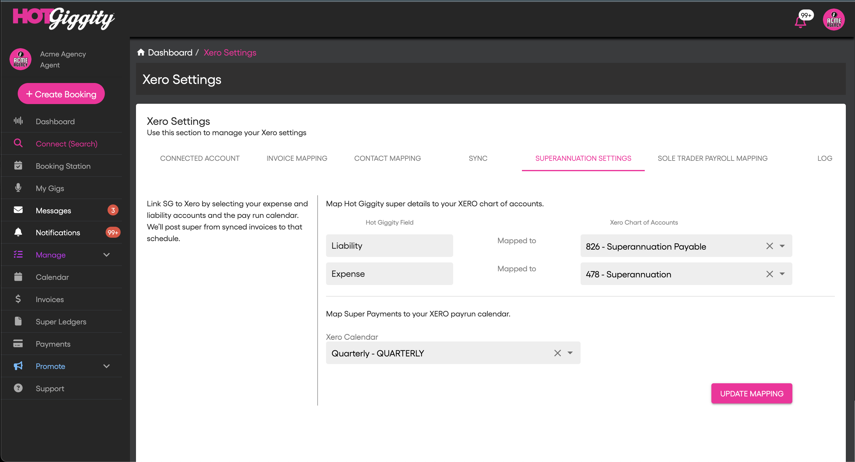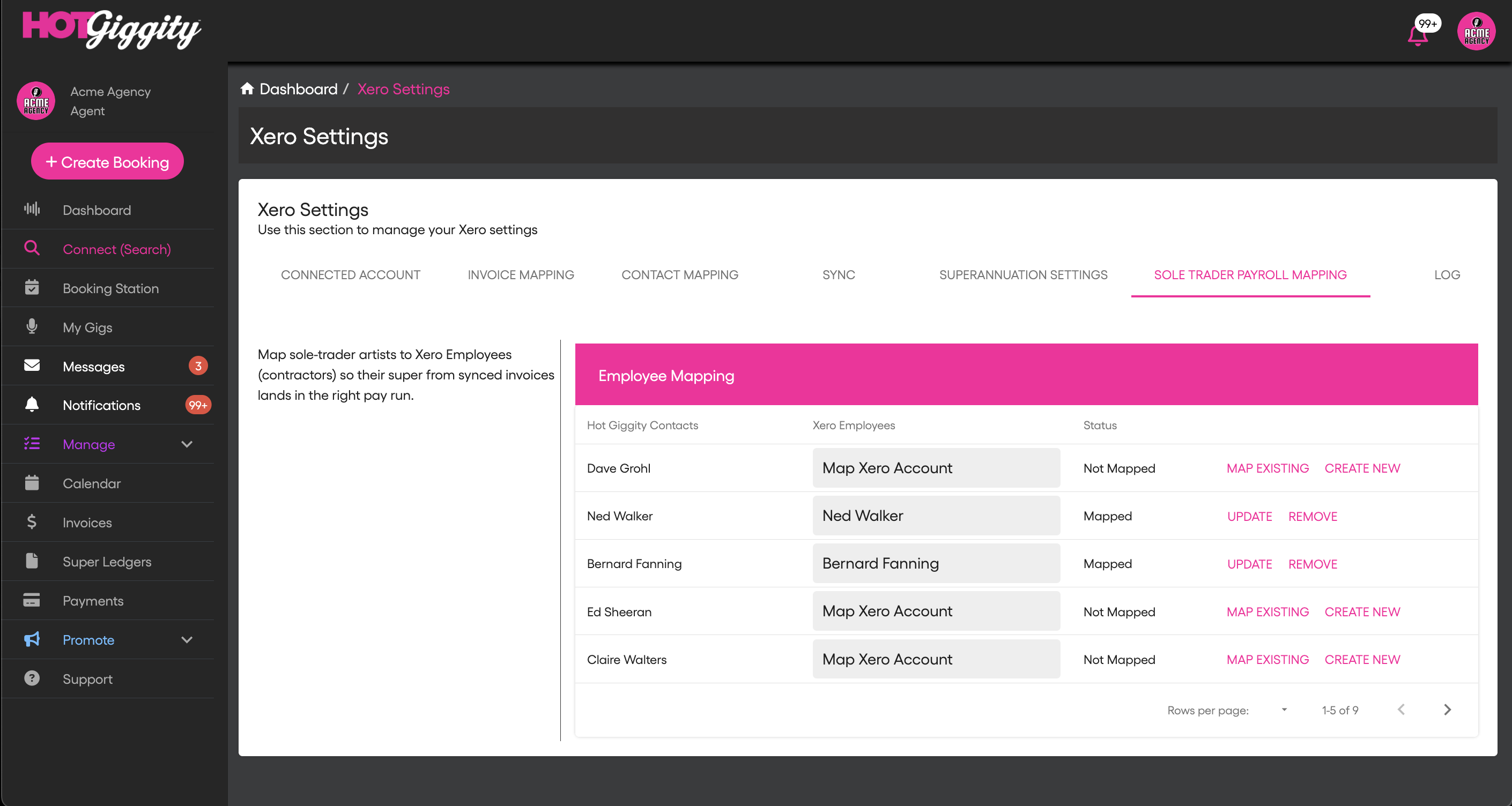 Go to Sole Trader Payroll Mapping to link Hot Giggity sole traders with Xero employees.