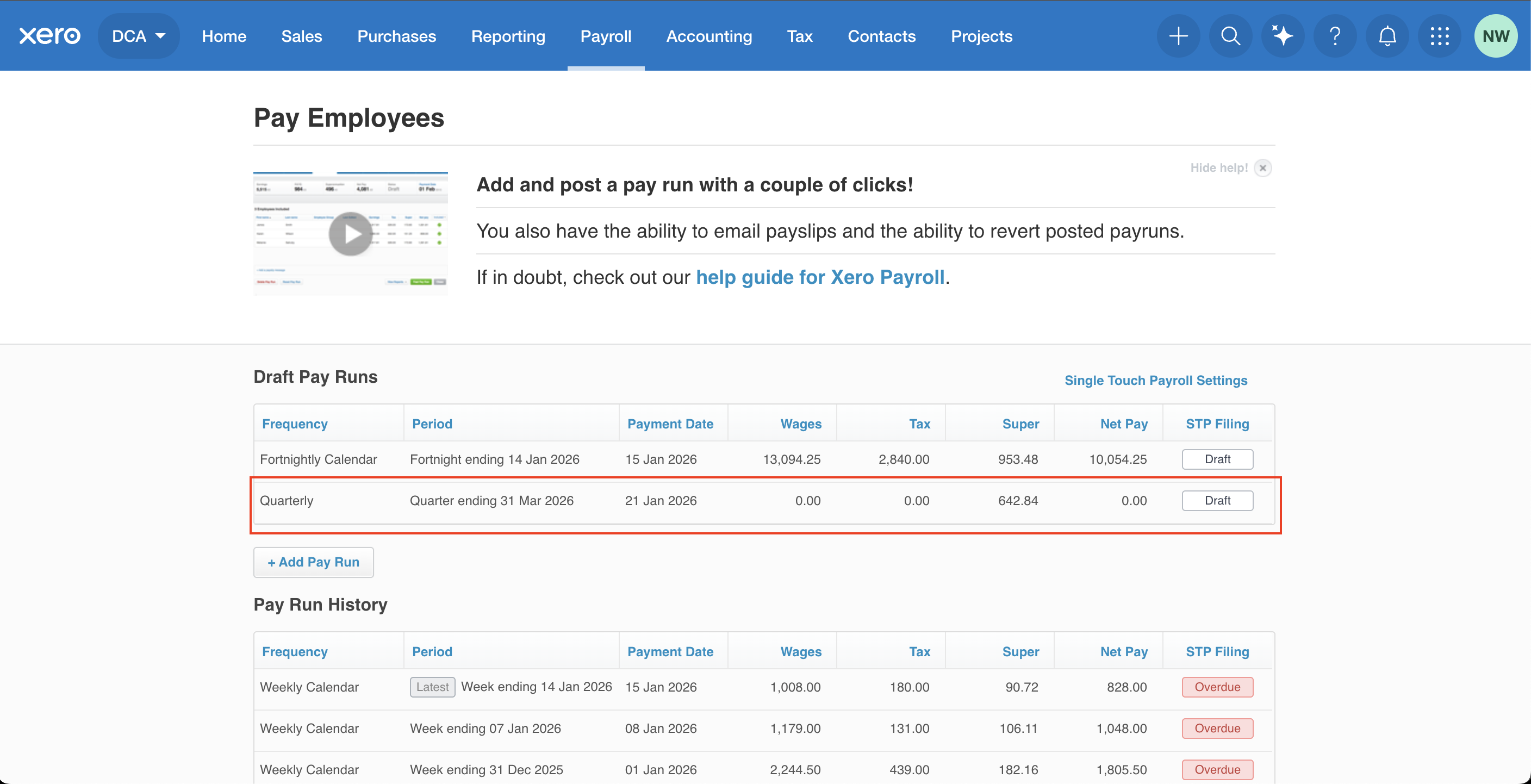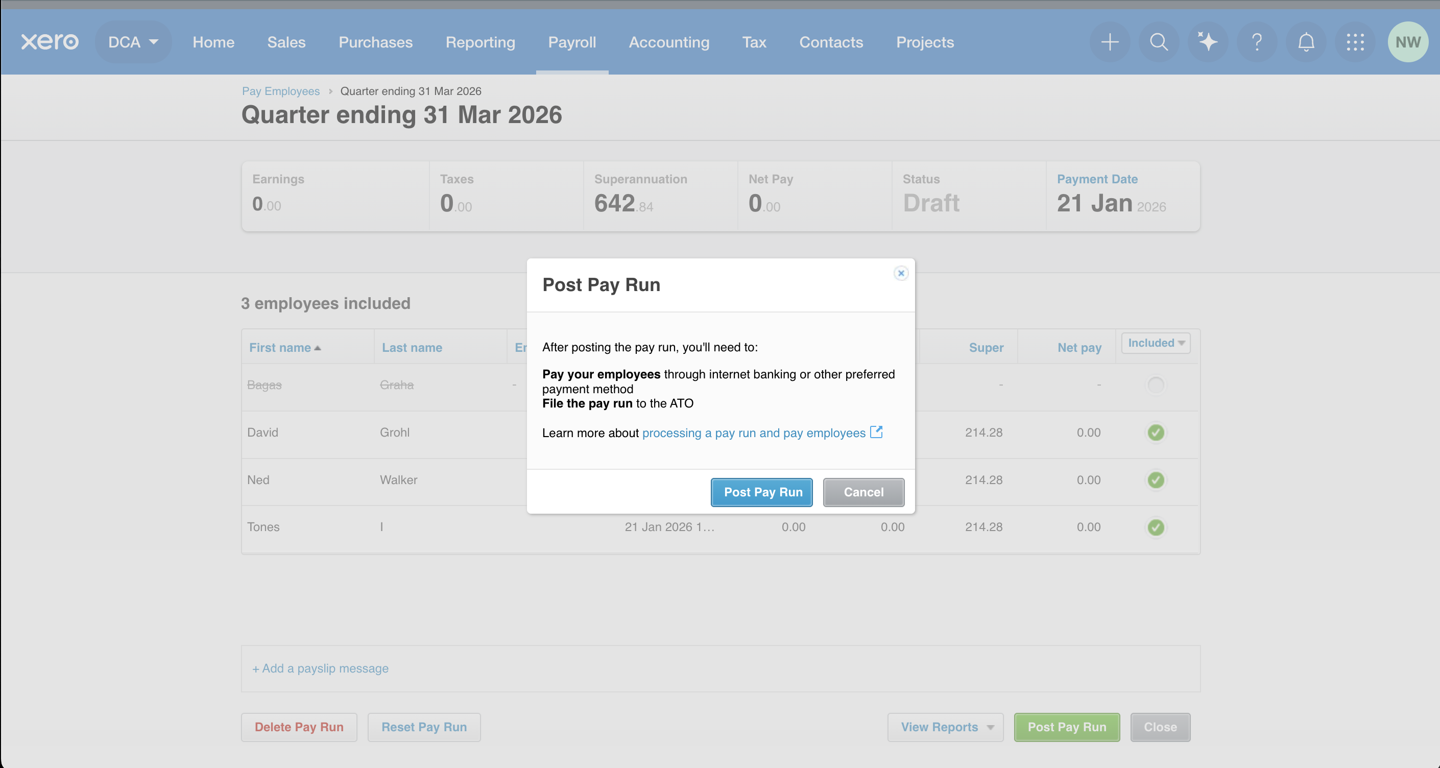 Important: Posted means the pay run is finalised in Xero.