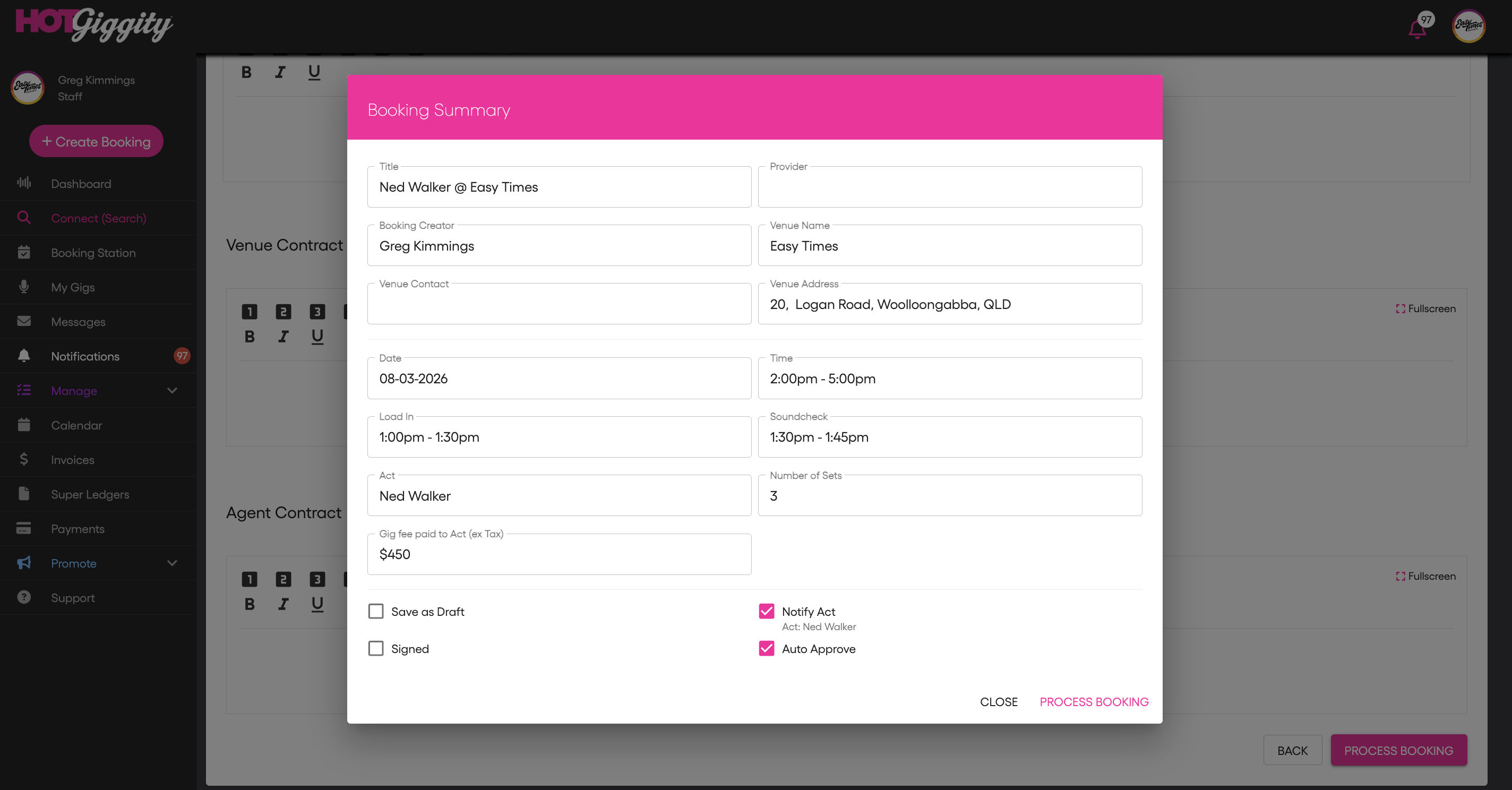 Hot Giggity now allows venues to automatically approve a booking when it is created.